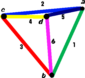 ・固定された「バー1」にa,b,c点にジョイントを用いて「バー2」「バー3」を組み付け底面となる正三角形abcを作る。