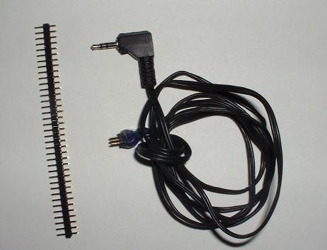 材料はケ−タイ用ヘッドセットと2.5mm間隔のピン端子。