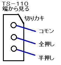 TS-110の丸いコネクタは入手不可だったので、ケーブルスイッチアダプター