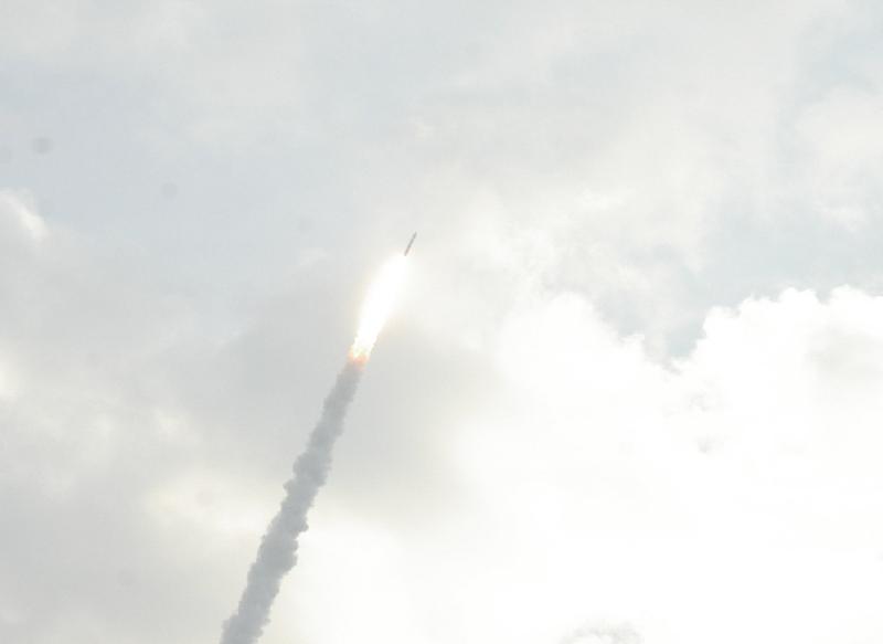 低い雲が有るので第一段分離は見ることはできなかったが、40秒ほど見えていたらしい。 感覚では15秒も無い感じ。固体ロケットの早さを実感。