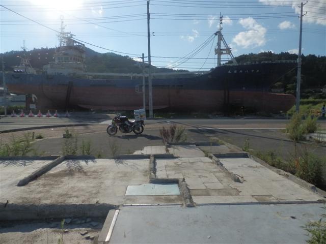 津波で流されてしまった街をみて通り過ぎるつもりだったのだけど、国道から見えた船!