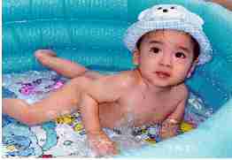 → おじいちゃんおばあちゃんにもらったプールで水遊び` |