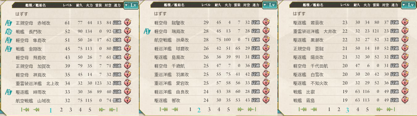 重巡の二人は、改に近かったので一気に上げて、駆逐艦は最初に言ったとおり、3-2対策で一気に改に押し上げた。