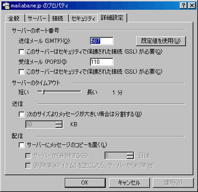 - 「詳細設定」タブをクリックして、サーバーのポート番号が25になっていることを